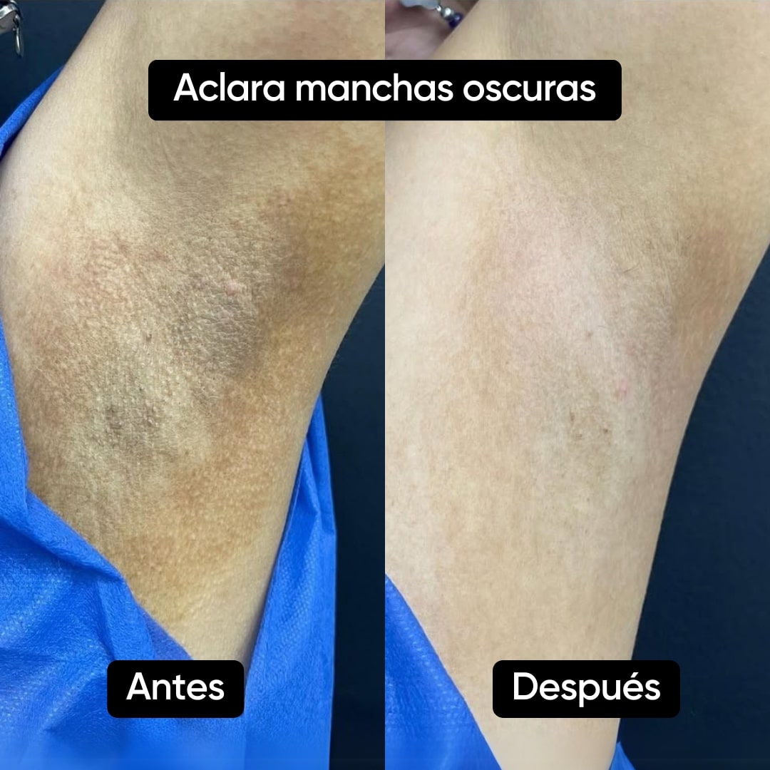 - Aclara zonas oscuras y cicatrices.