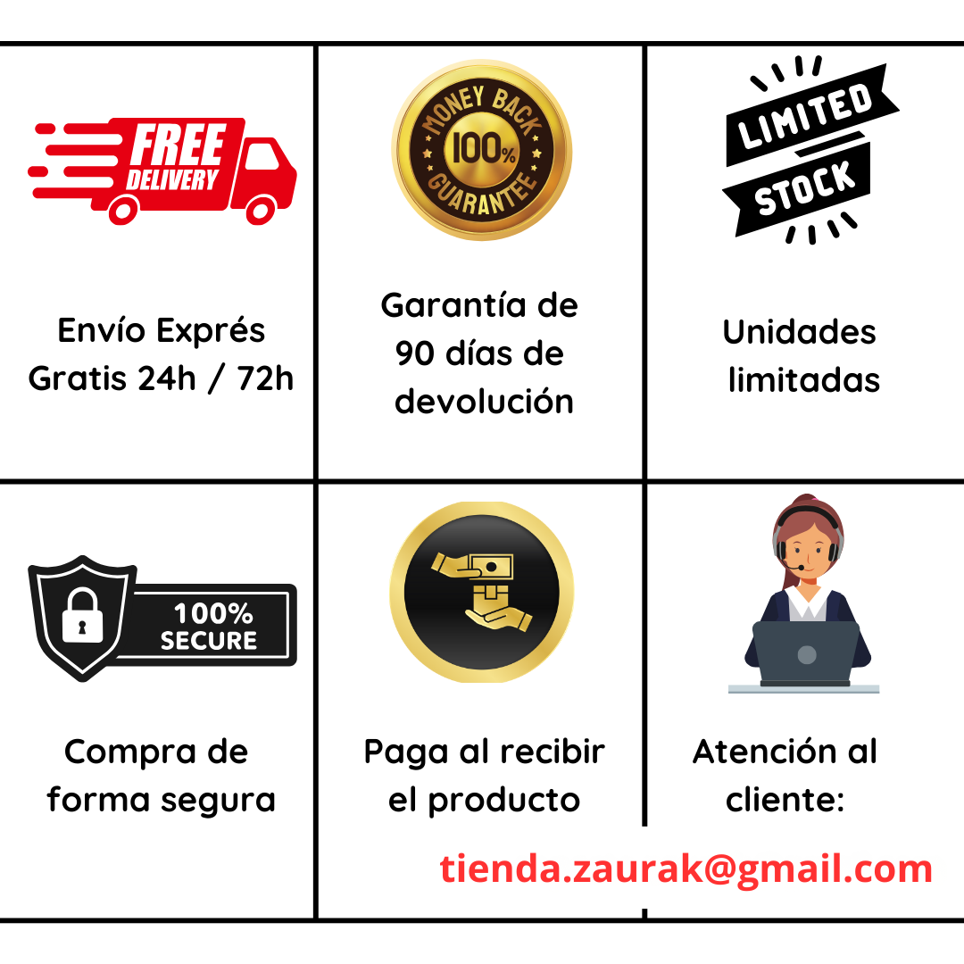 Garantía y devoluciones: Confiamos en la calidad de nuestros productos, por eso ofrecemos una generosa política de devolución de 90 días.